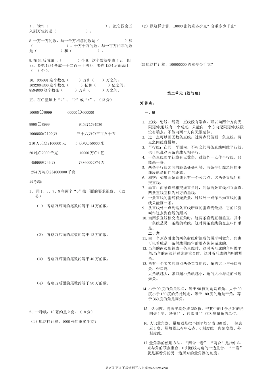 四年级上册数学期末复习资料班级________姓名_________同学们,时间过的真快,转眼一学期的时间就过去了,那么你都学会了哪些有趣的数学知识呢?利用这份题目,将它们复习一遍,看看你已经掌握了哪些地方,哪些地...