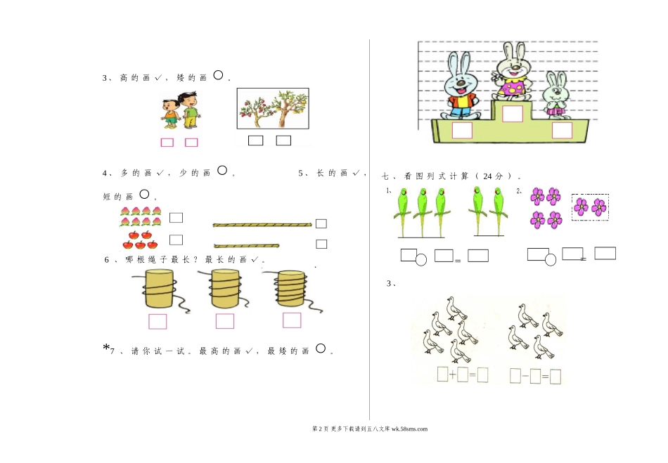 2018-2019学年度第一学期一年级数学期中试卷.doc_第2页