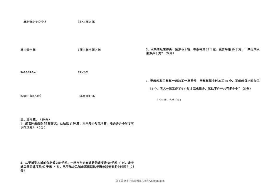 人教版四年级数学下册1-3单元测试题.doc_第2页