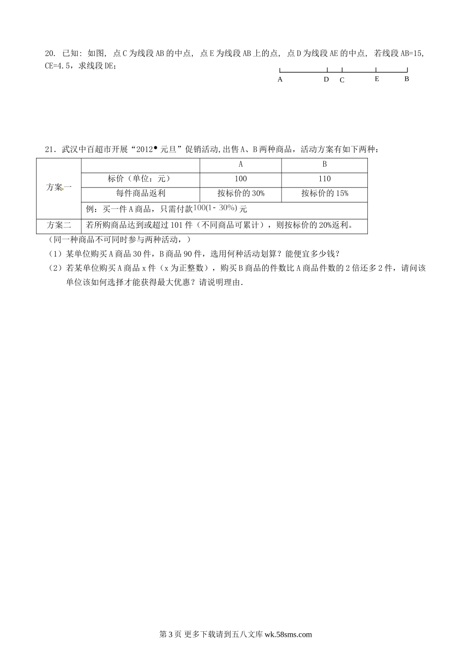 2012-2013学年七年级上学期数学期末冲关训练D2.doc_第3页