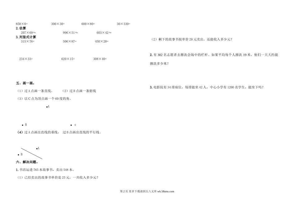第一学期青岛版四年级数学1-4单元测试题.doc_第2页