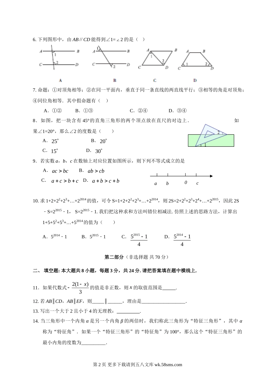 北京市东城区第二学期初一数学期末试题及答案.doc_第2页