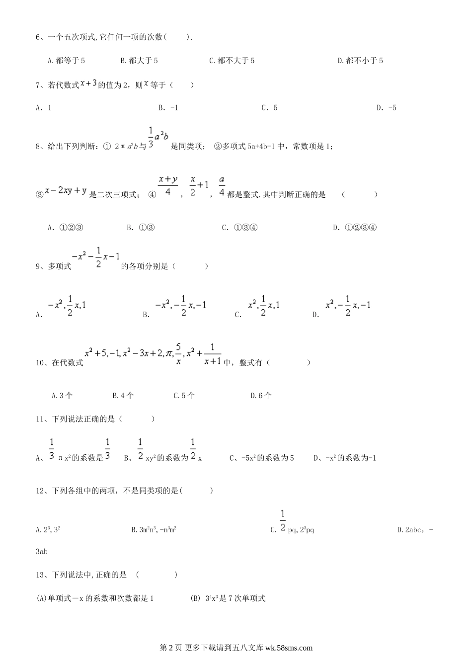 初一整式提高练习题及答案.doc_第2页