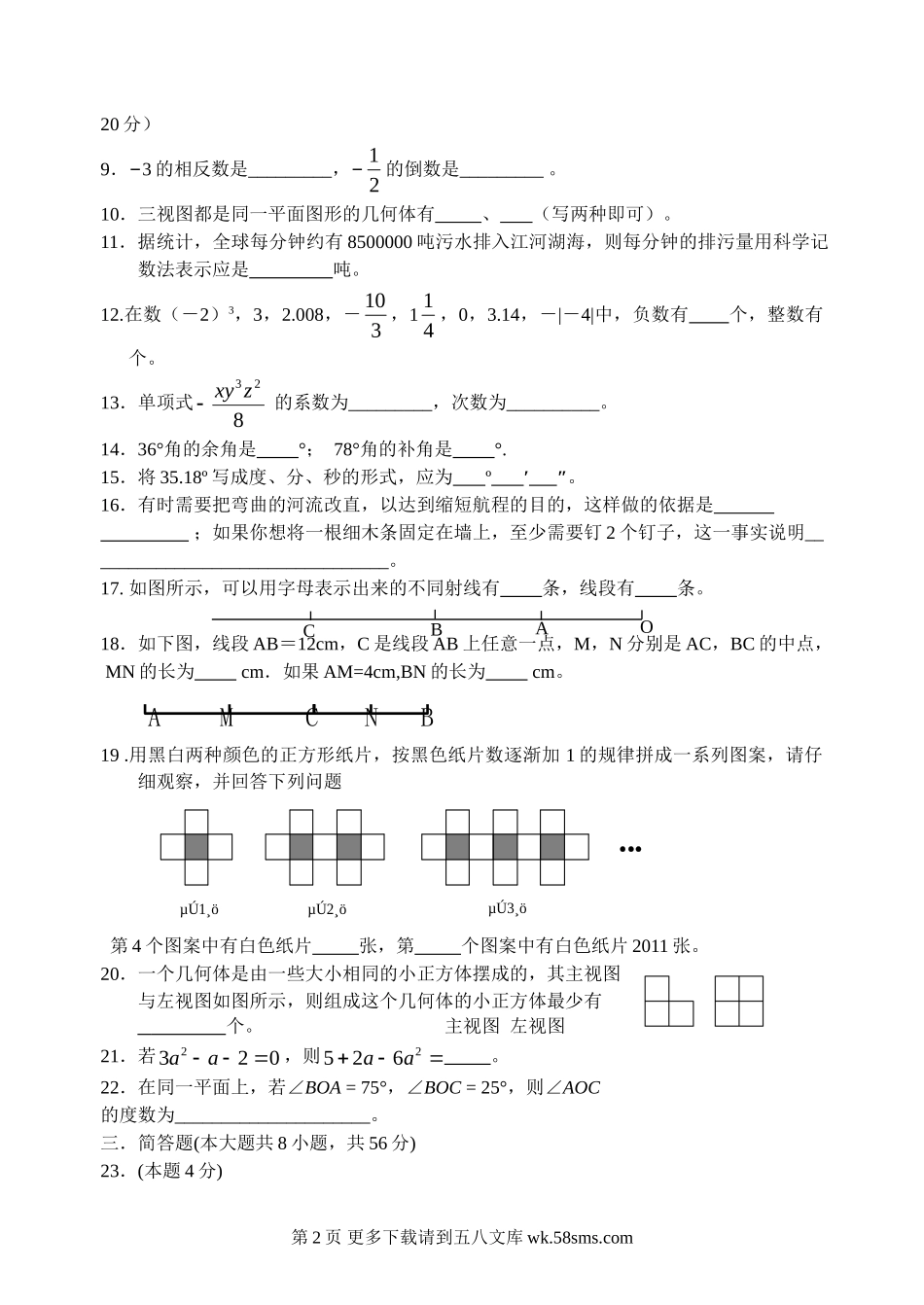 第一学期阶段性学习七年级数学D(3).doc_第2页