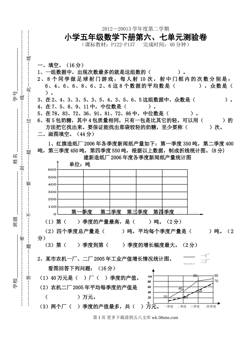 小学五年级数学下册第六、七单元测试卷.doc_第1页
