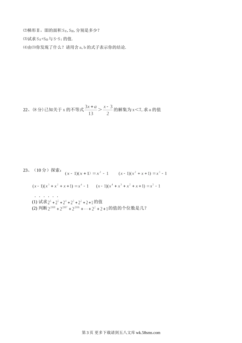 2012-2013学年度七年级数学下学期期中复习题一、选择题。(本题满分30分,每小题3分)1、下列运算正确的是:()A.B.C.D.2、下列说法正确的是:()A.一个数的算术平方根都是正数。B.只有正数才有平方根。C.一...