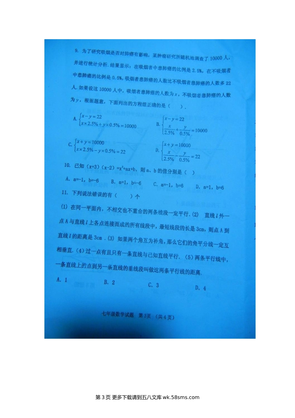 临清市七年级第二学期期中数学试题及答案.doc_第3页