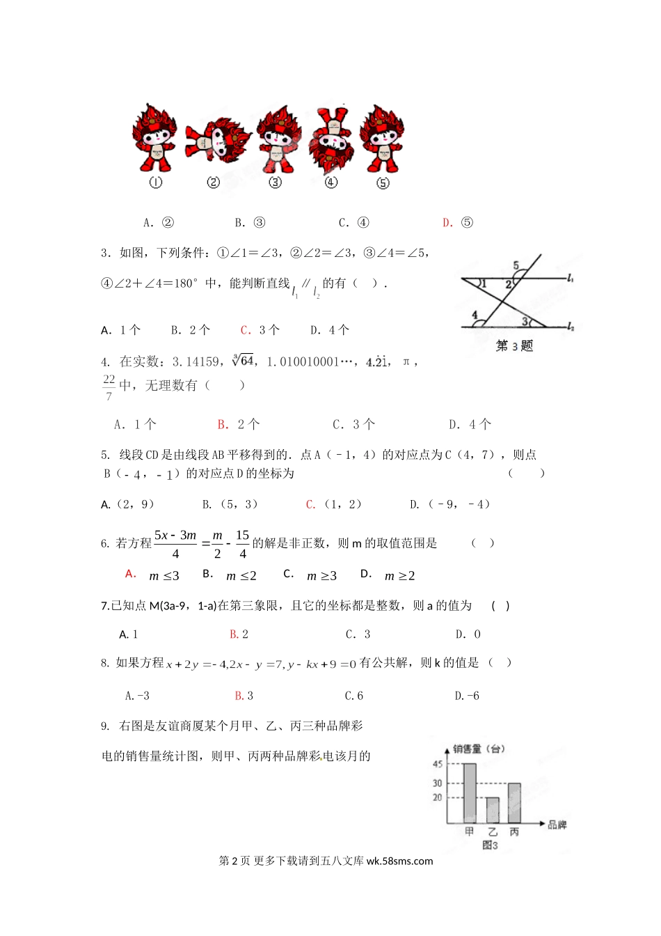 宁城县七年级下学期期末学业水平测试数学试卷及答案.doc_第2页