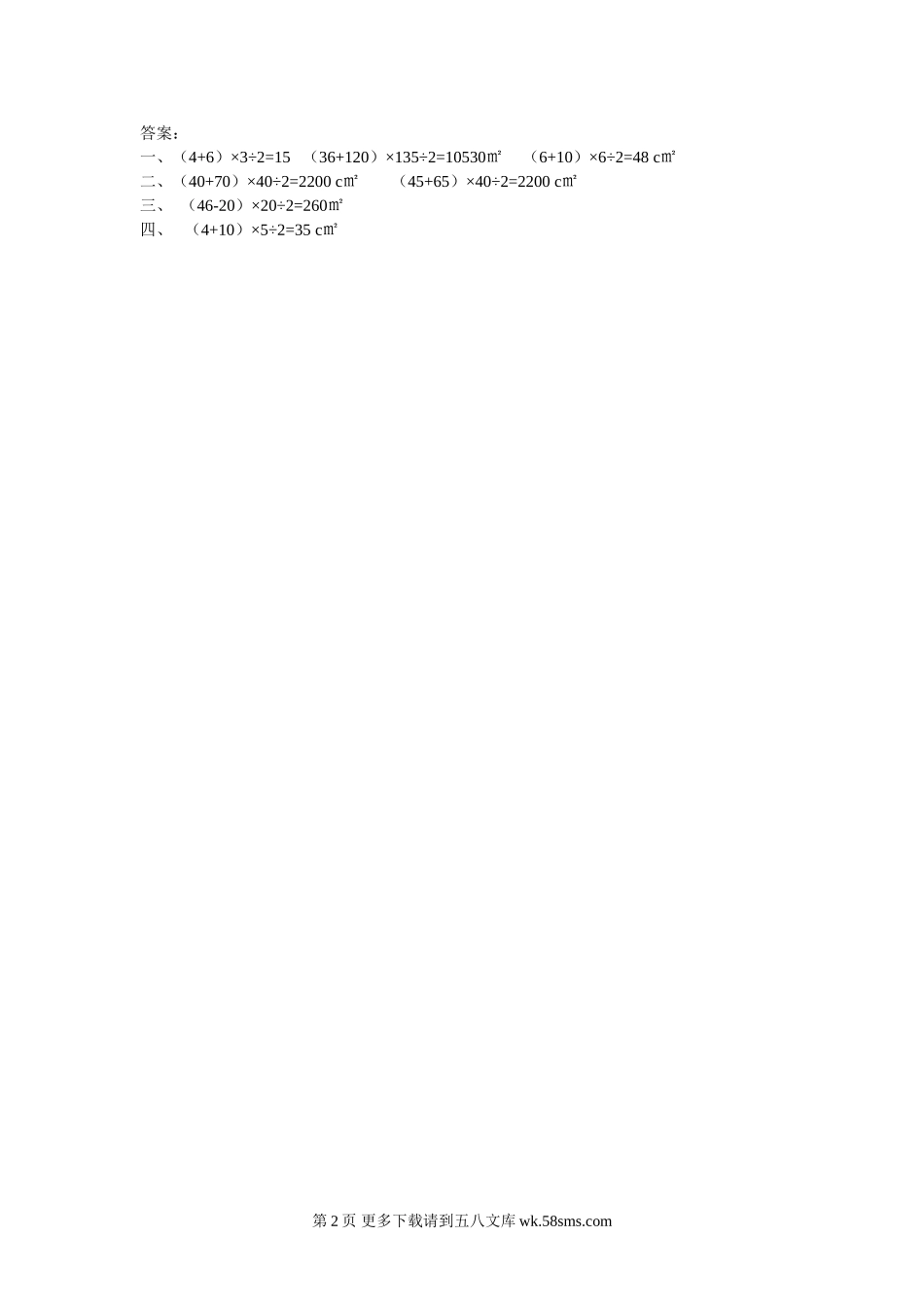 2016年五上6.3 梯形的面积练习题及答案.doc_第2页