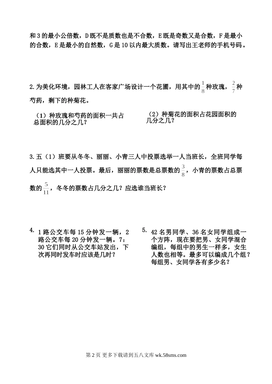2016小学五年级数学下册期末复习题二 数与代数(二).doc_第2页