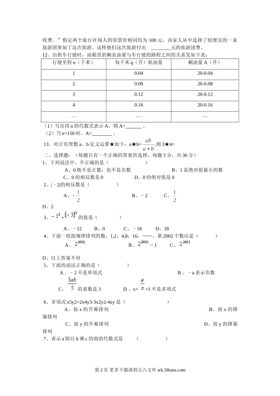 七年级上人教新课标期中试卷--数学.doc_第2页