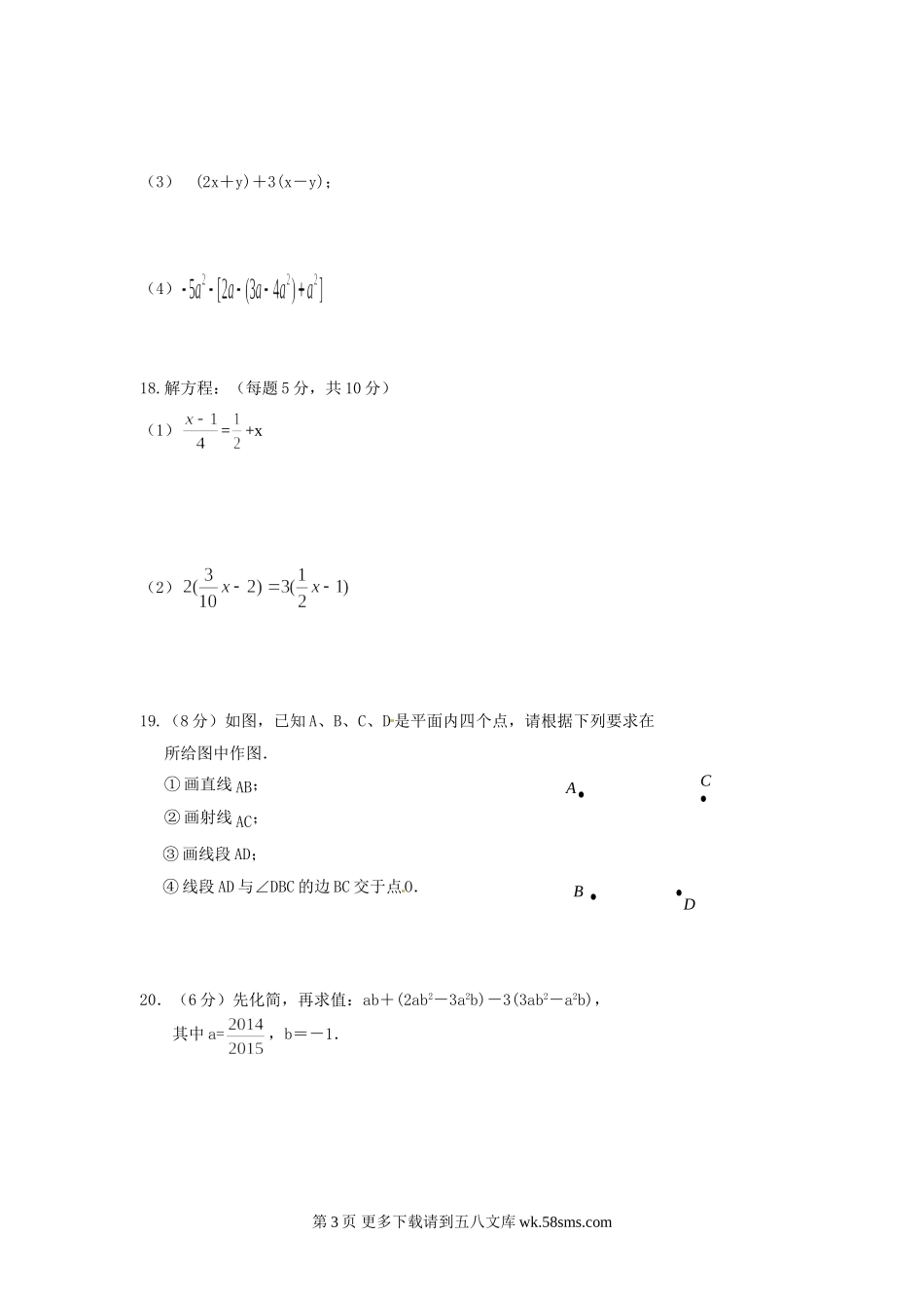 七年级上学期数学期末模拟试题及答案.doc_第3页