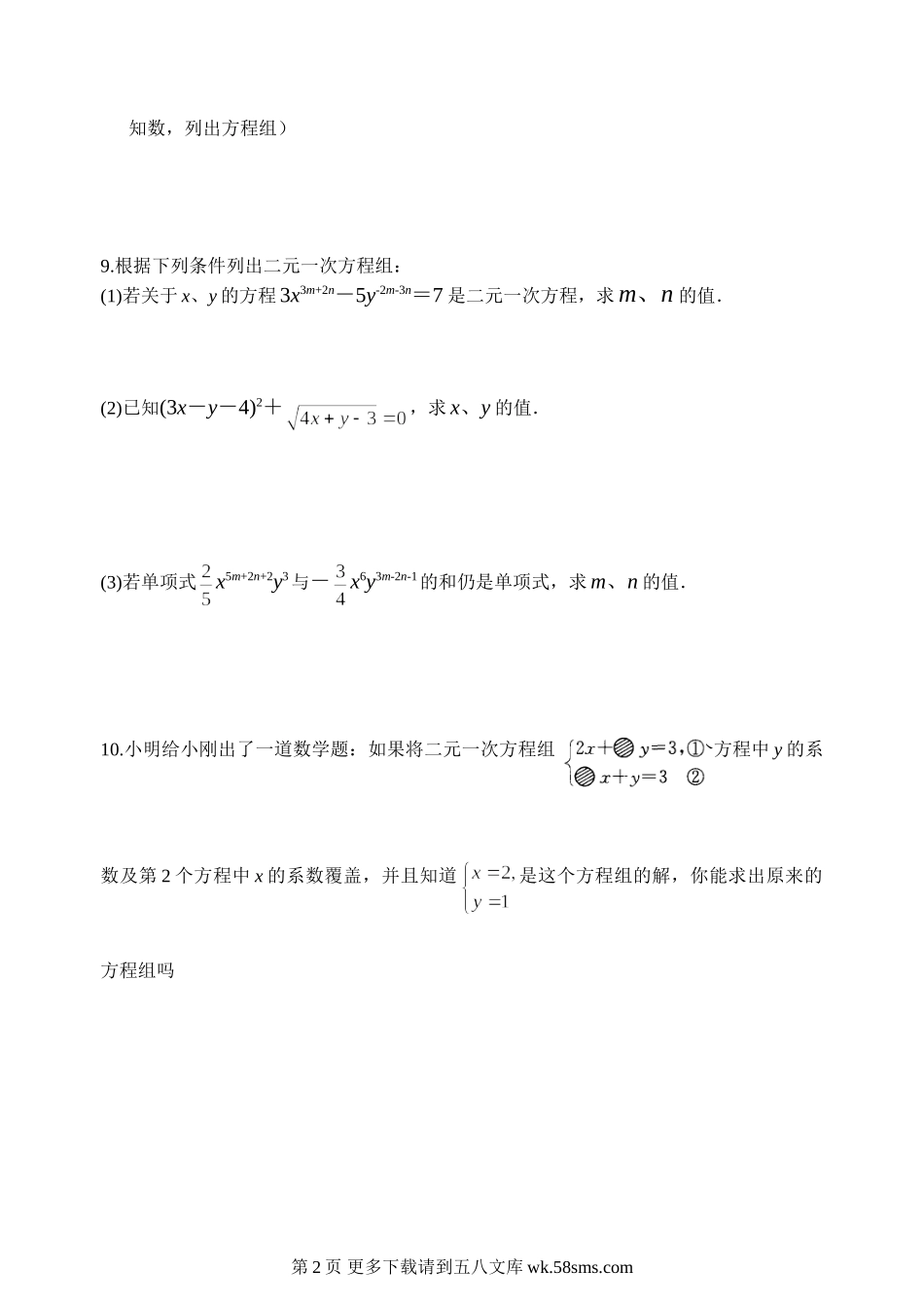 七年级数学10.2二元一次方程组练习题.doc_第2页