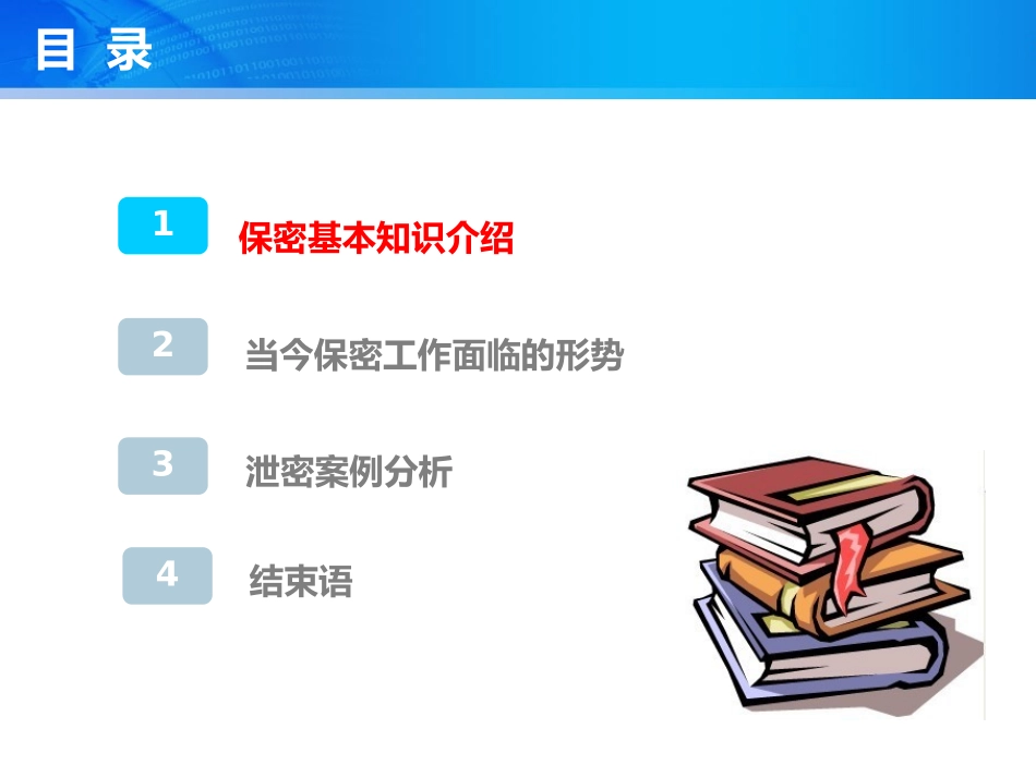 员工保密意识及技能教育培训即课学堂目录保密基本知识介绍1当今保密工作面临的形势23泄密案例分析4结束语保密基本知识介绍保密基本知识介绍保密基本知识介绍保密基本知识介绍保密基本知识介绍保密基本知识介绍保...