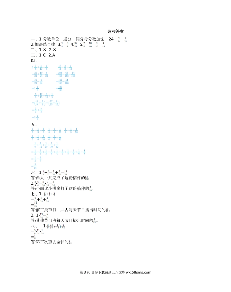 第二单元测试卷(B)一、我会填。(28分)二、我会判。(对的画“√”,错的画“✕”)(6分)三、我会选。(将正确答案的序号填在括号里)(4分)1.下面各题中,计算正确的是()。2.两个不同的真分数的差一定是()。A.真分数B.假...