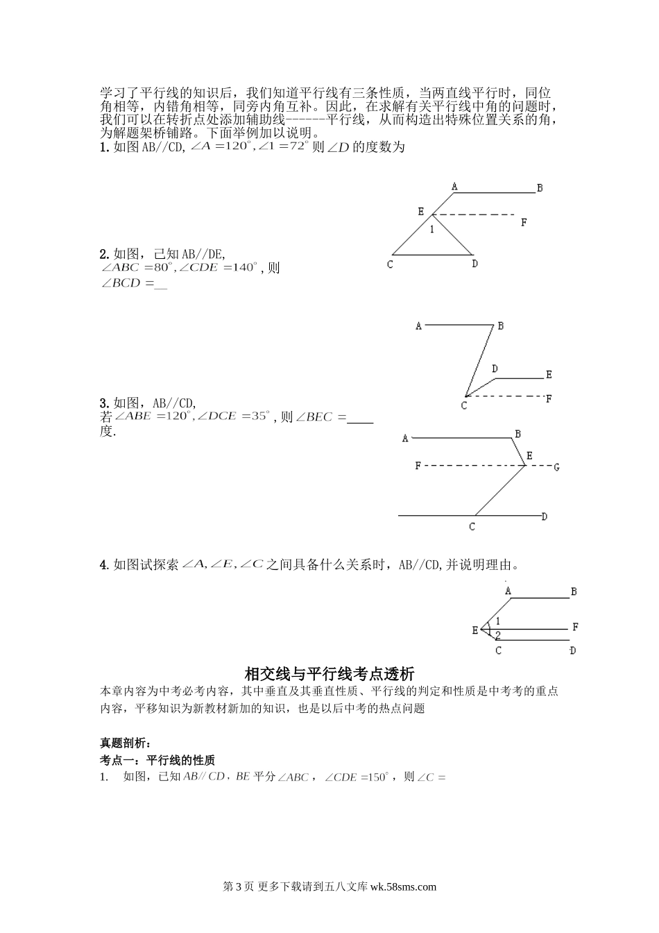 七年级数学第五章 相交线与平行复习题.doc_第3页
