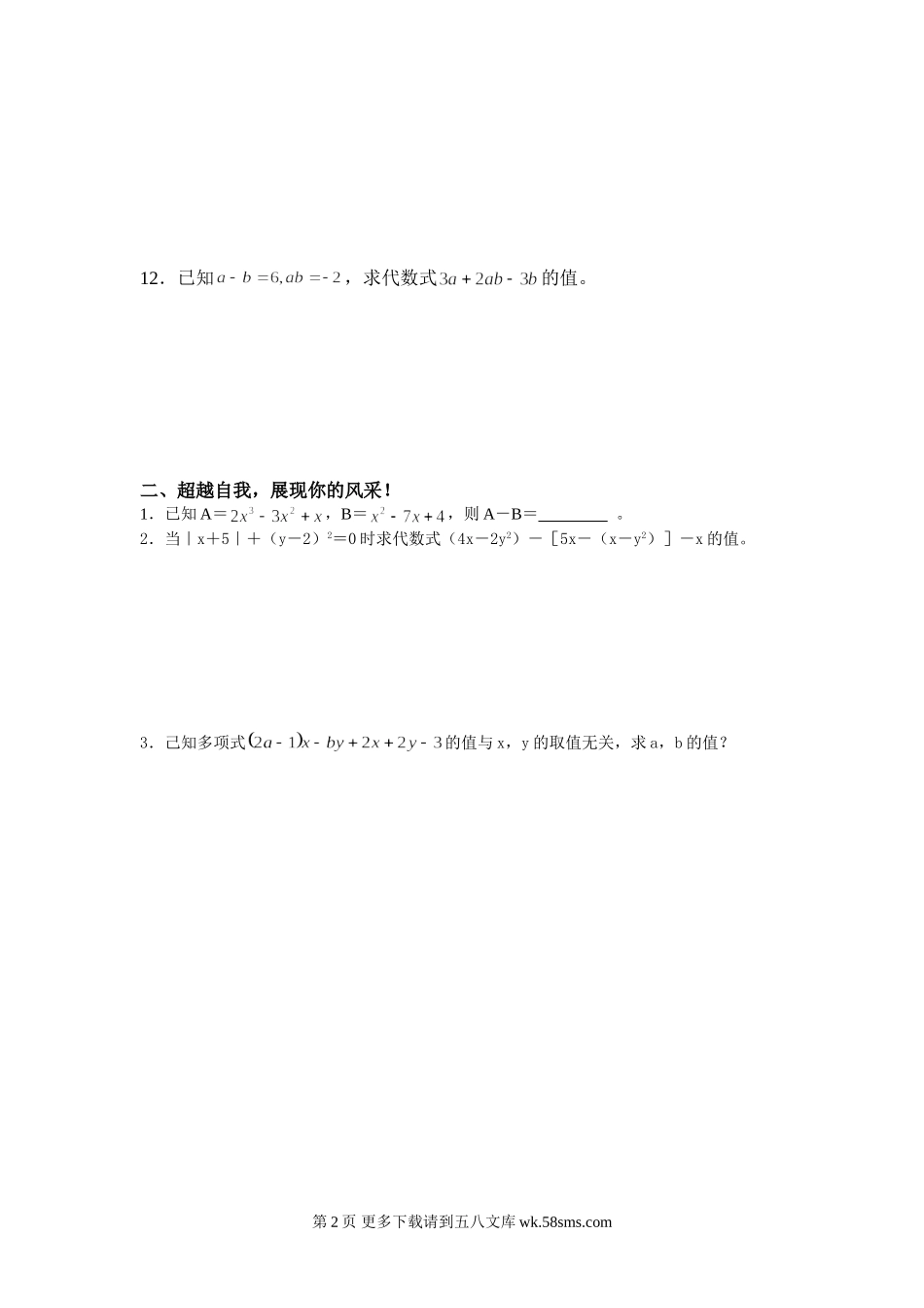 七年级数学七上第三章整式及其加减期末复习题.doc_第2页