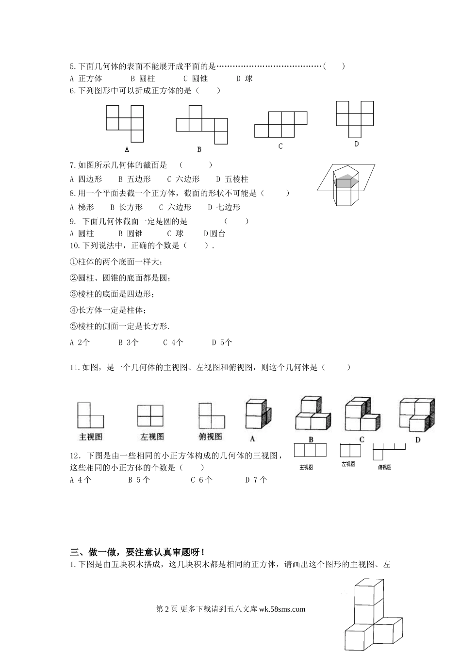 七年级数学七上第一章丰富的图形世界复习题.doc_第2页