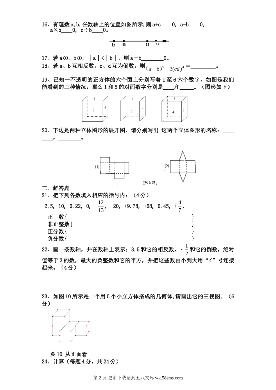 七年级数学七上数学第一、二章复习试题.doc_第2页
