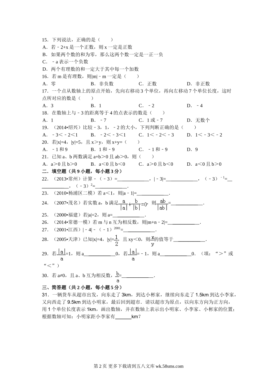 七年级数学上册第二章有理数常见题型课堂练习题.doc_第2页
