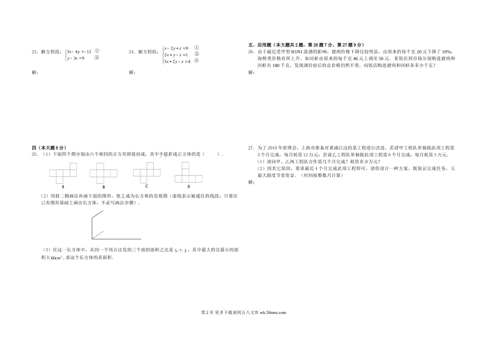 七年级数学阳光外国语学校第二学期六年级数学期末复习试卷3.doc_第2页