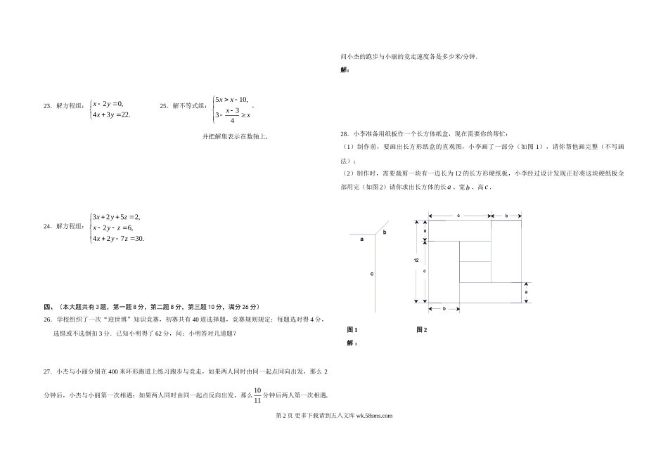 七年级数学阳光外国语学校第二学期六年级数学期末复习试卷5.doc_第2页