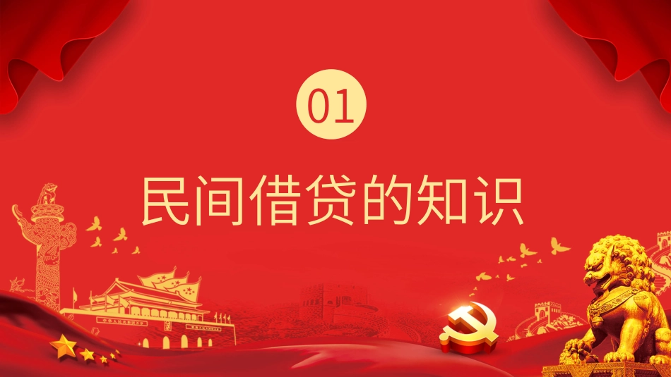 社区普法讲座主讲人:XXX时间:20XX.08学习立法/懂法明理/守法尚诚目录民间借贷的知识1房产及租赁知识2婚姻法知识3老人权益以及继承问题4赌博、酒驾问题5民间借贷的知识01民间借贷的知识1、民间借贷是指公民之间...