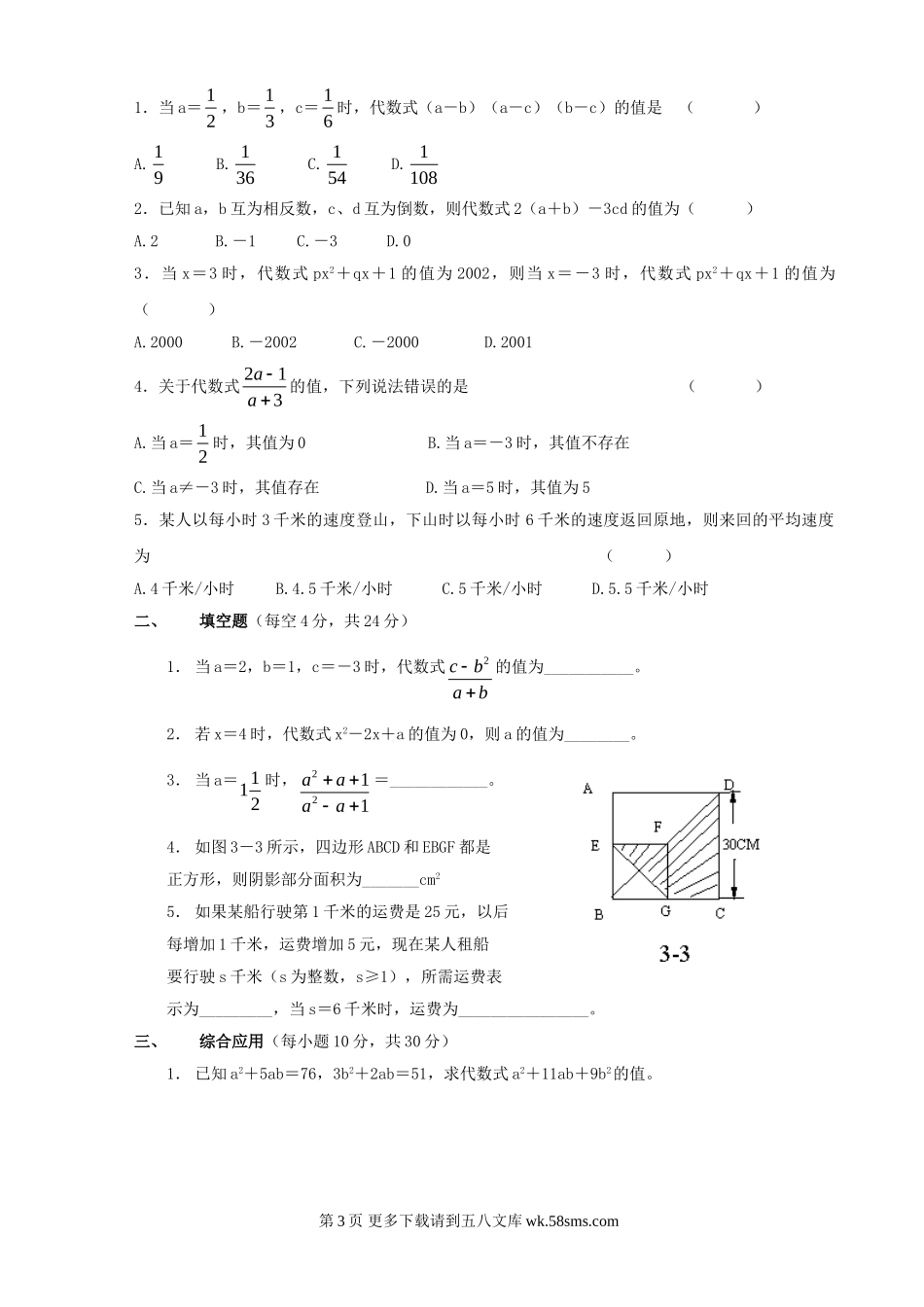 数学七年级上华东师大版3.2代数式的值同步练习.doc_第3页