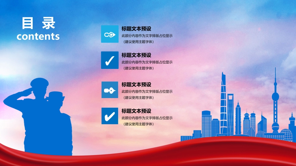 公安系统PPT模板汇报人:包图网导师:酸菜包目录contents1标题文本预设此部分内容作为文字排版占位显示(建议使用主题字体)标题文本预设此部分内容作为文字排版占位显示(建议使用主题字体)3标题文本预设此部分...
