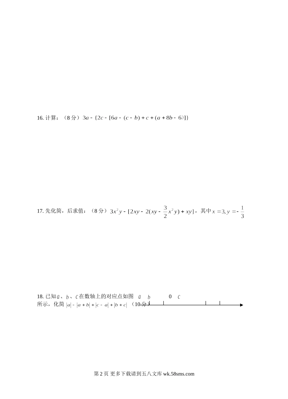 数学七年级上人教新课标第二章整式的加减测试题10.doc_第2页