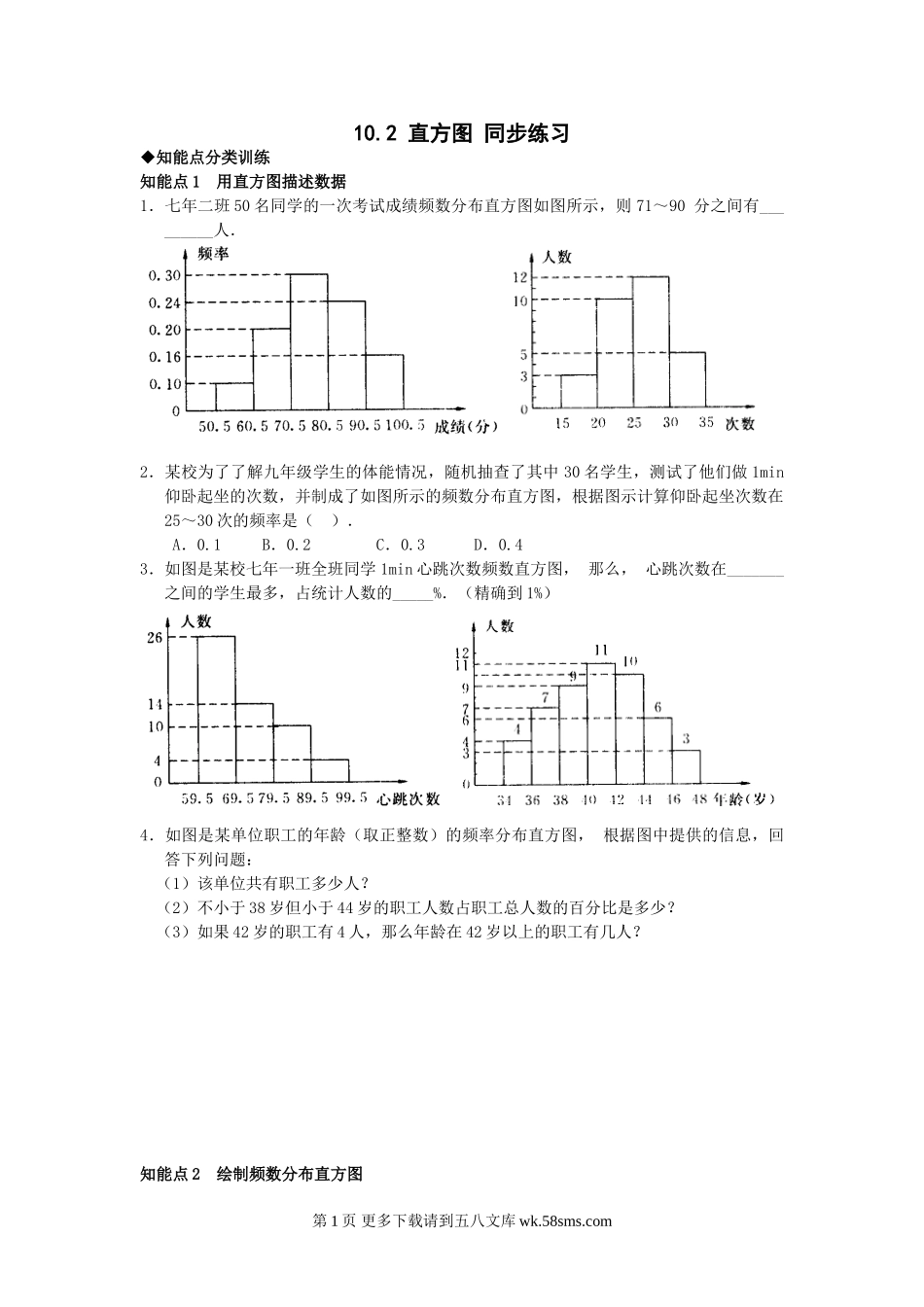 数学七年级下人教新课标10.2直方图同步练习1.doc_第1页