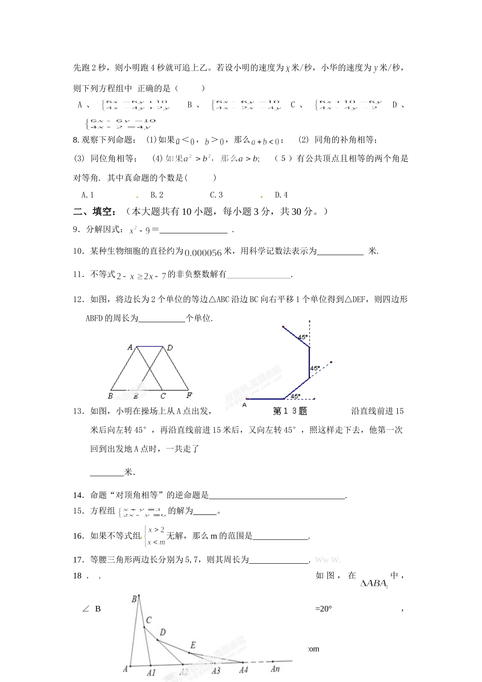 泰州市海陵区七年级下学期期末考试数学试题及答案.doc_第2页