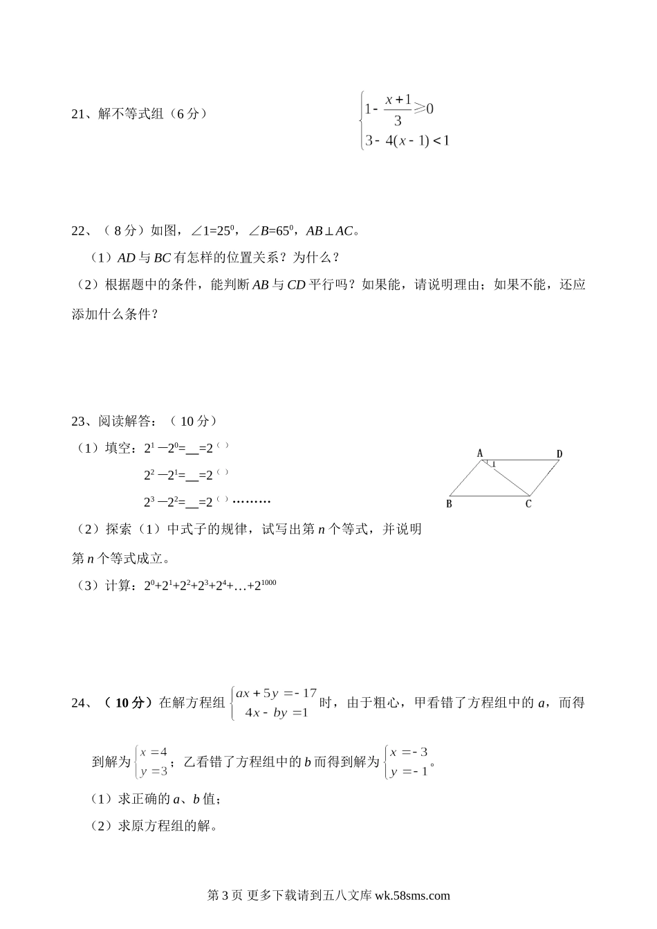 新版苏科版七年级下册数学期末模拟卷(二).doc_第3页