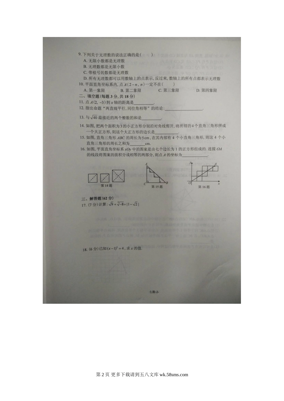 第1页更多下载请到五八文库wk.58sms.com第2页更多下载请到五八文库wk.58sms.com第3页更多下载请到五八文库wk.58sms.com第4页更多下载请到五八文库wk.58sms.com2015—2016学年第二学期七年级期中质检数学参考答案...