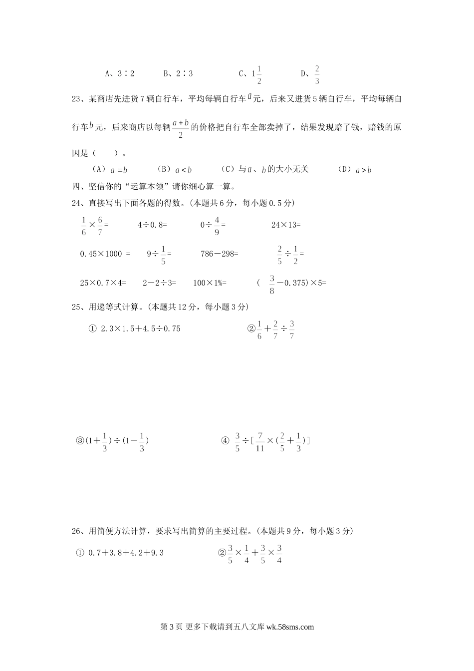 浙江宁波镇海仁爱中学2010七年级摸底测验试卷--数学.doc_第3页