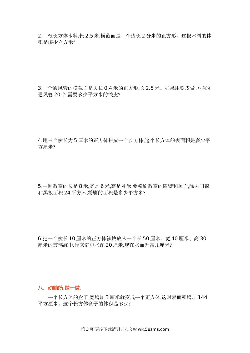 第一单元测试卷(一)一、填空题。1.正方体是()都相等的长方体,如果用V表示体积,用a表示正方体的棱长,那么V=()。2.一个长方体,长4分米,宽3分米,高2分米,它的棱长总和是()分米,它最大的一个面的面积是()平方分米,...