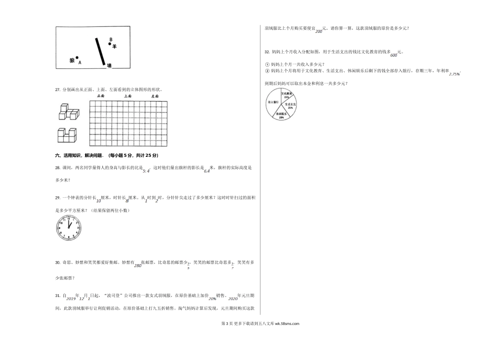 安庆市迎江区2019-2020学年六年级数学上册期末试卷.doc_第3页