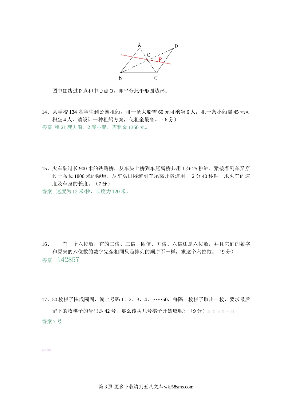 2013年初一新生招生考试数学试题(样题含答案)1、一个数先加3,再除以3,然后减去5,再乘以4,结果是56,这个数是_______。答案542、一个盖着瓶盖的瓶子里面装着一些水(如下图所示),请你根据图中标明的数据,...