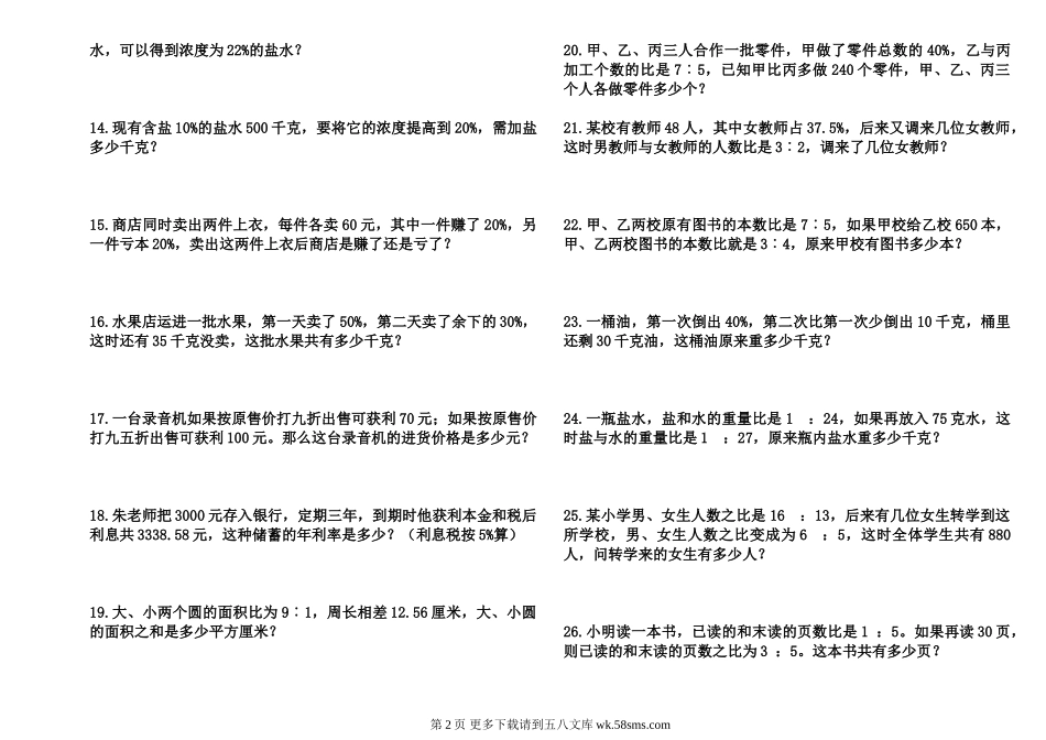 六年级上册数学难点应用题试卷.doc_第2页