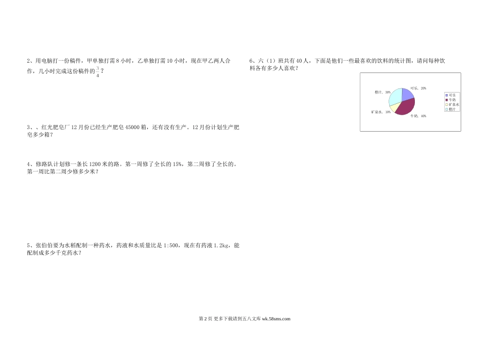 六年级上学期数学期末检测题.doc_第2页