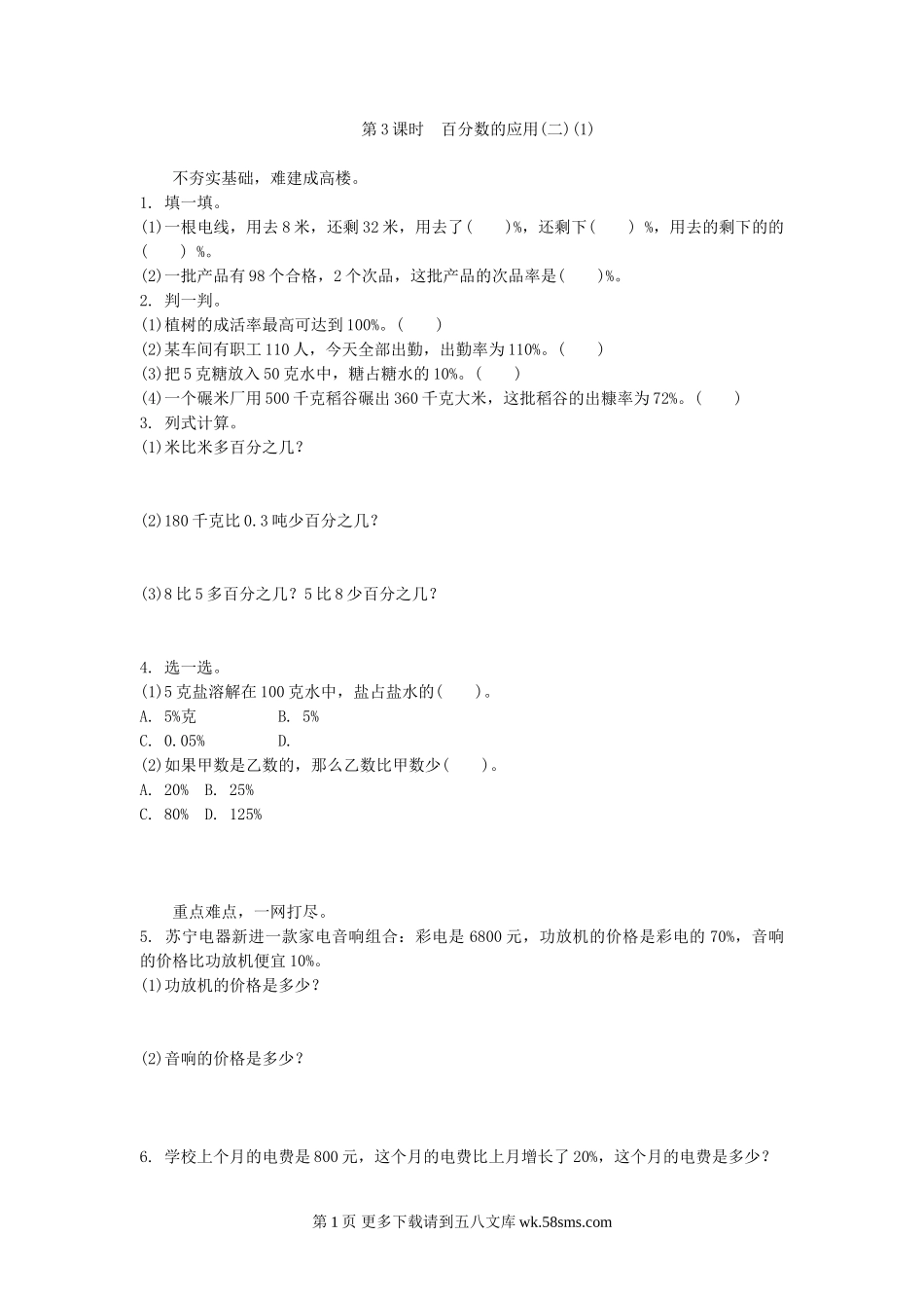 六年级数学2.3百分数的应用(二)(1)练习题及答案.doc_第3页