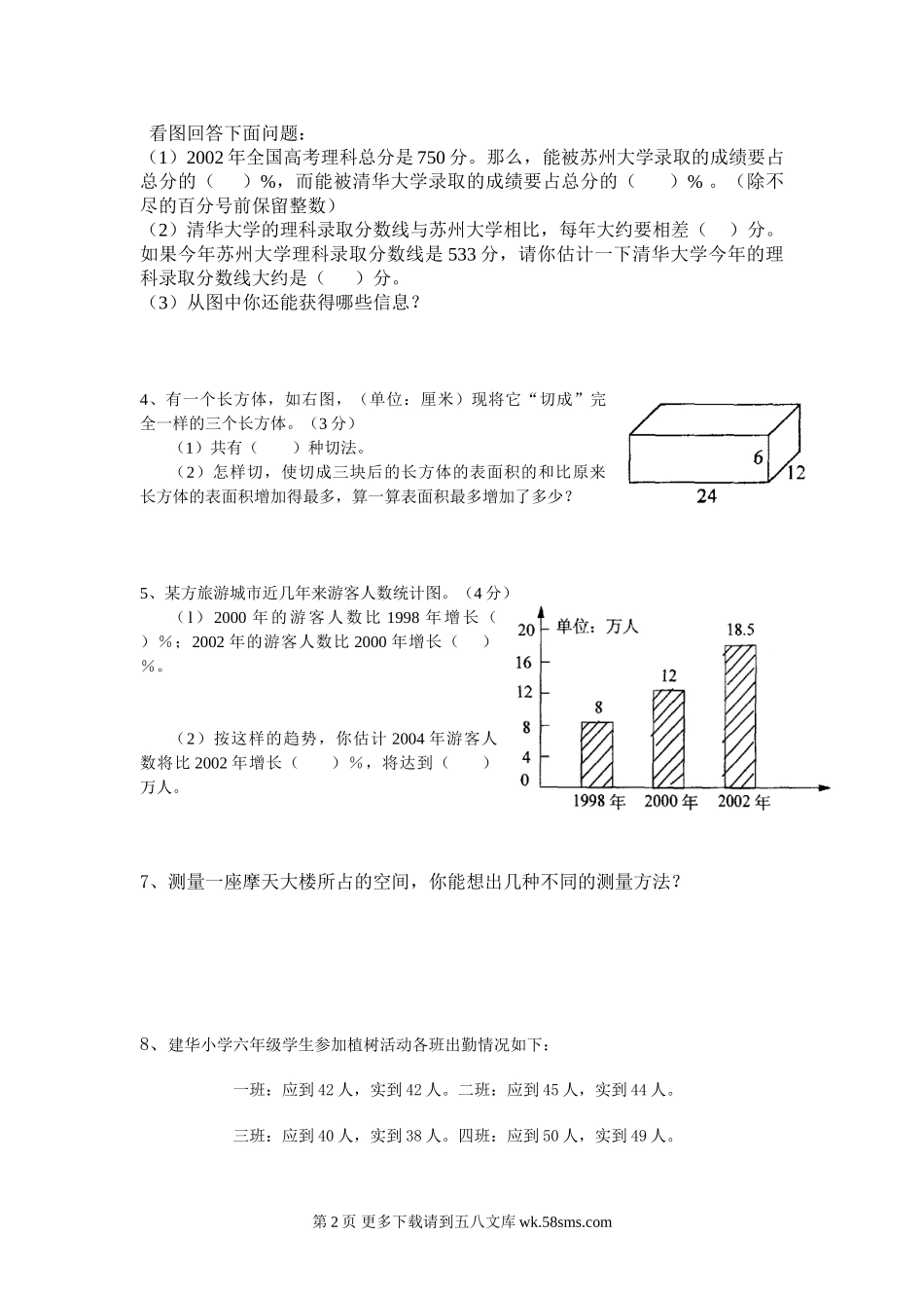 八.解决问题(6分)1、厦门某大型儿童乐园的门票零售每张20元。六(1)班有46人,请你根据乐园管理处规定(如图),设计两种购票方式,并指出哪种购票方式最便宜。方式一:方式二:最便宜的购票方式是:2、用长1...