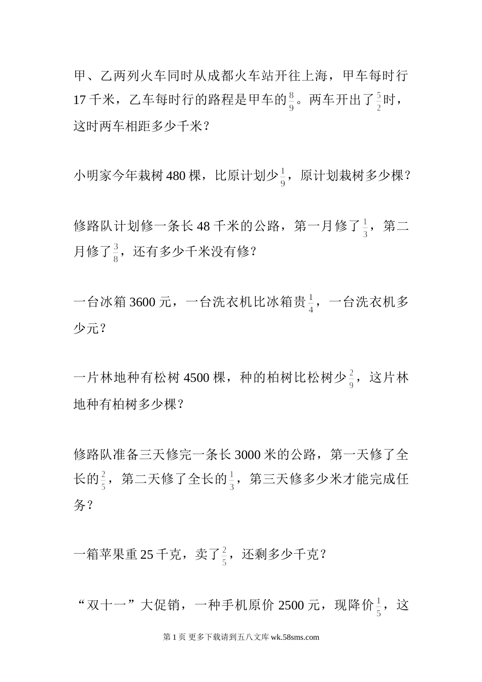 六年级数学上期专项训练—分数混合运算解决问题.doc_第2页