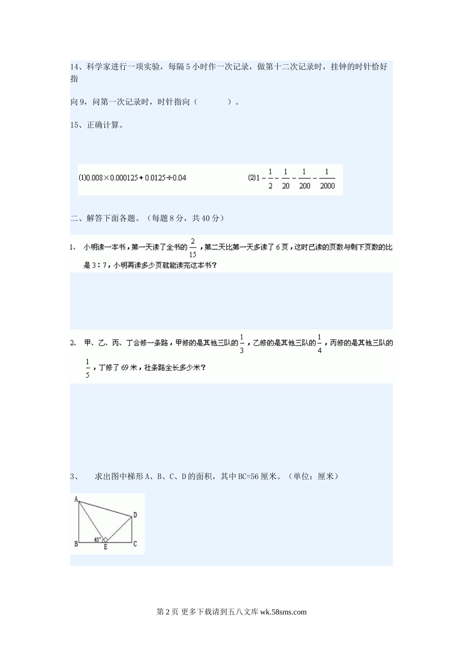 六年级数学重点中学小学升初中模拟试卷之一.doc_第2页