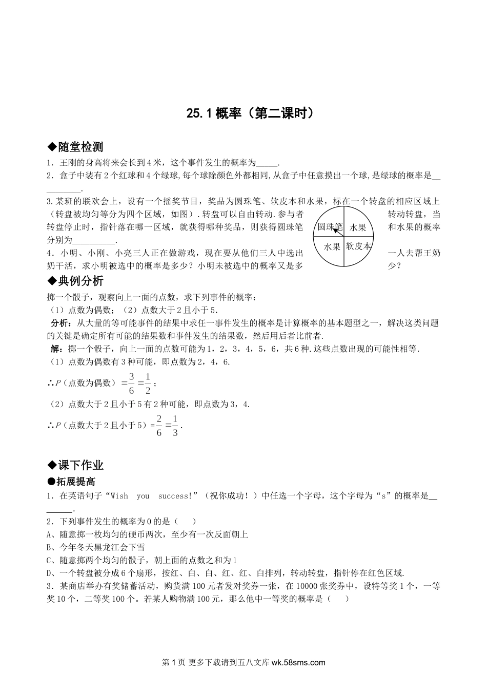 初三九年级数学25.1概率(第二课时).doc_第1页