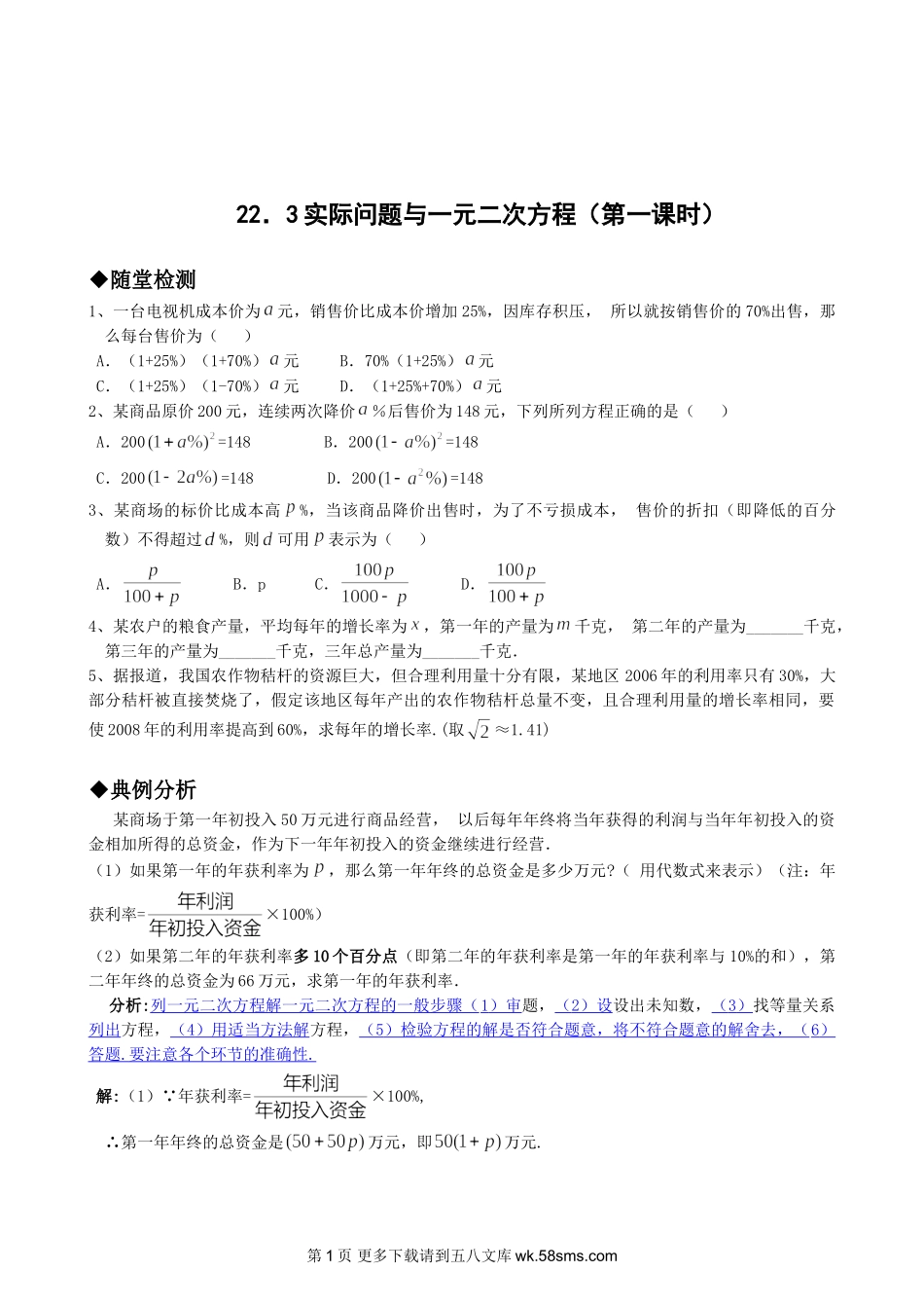 初三九年级数学22.3实际问题与一元二次方程(第一课时).doc_第1页