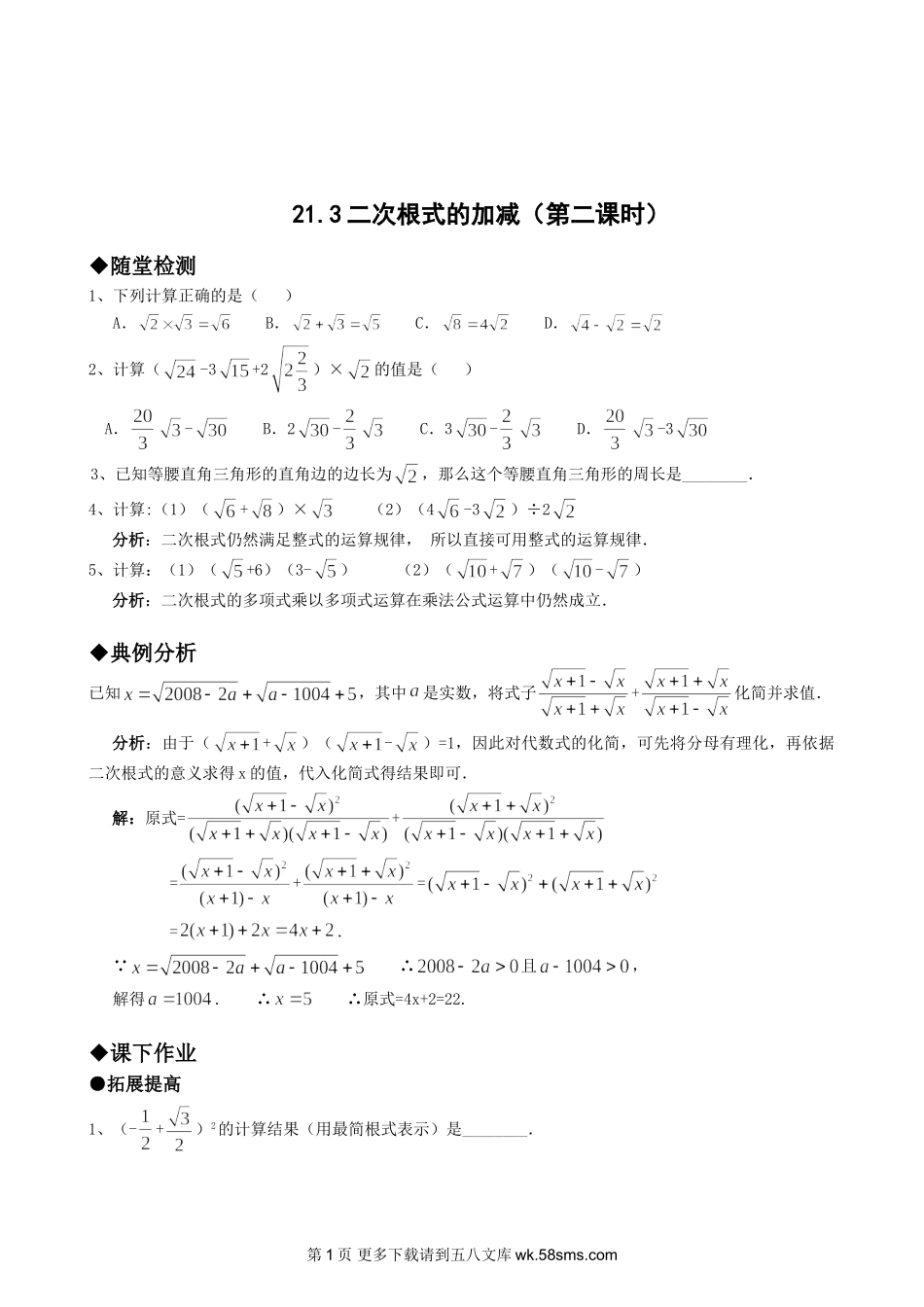 初三九年级数学21.3二次根式的加减(第二课时).doc_第1页