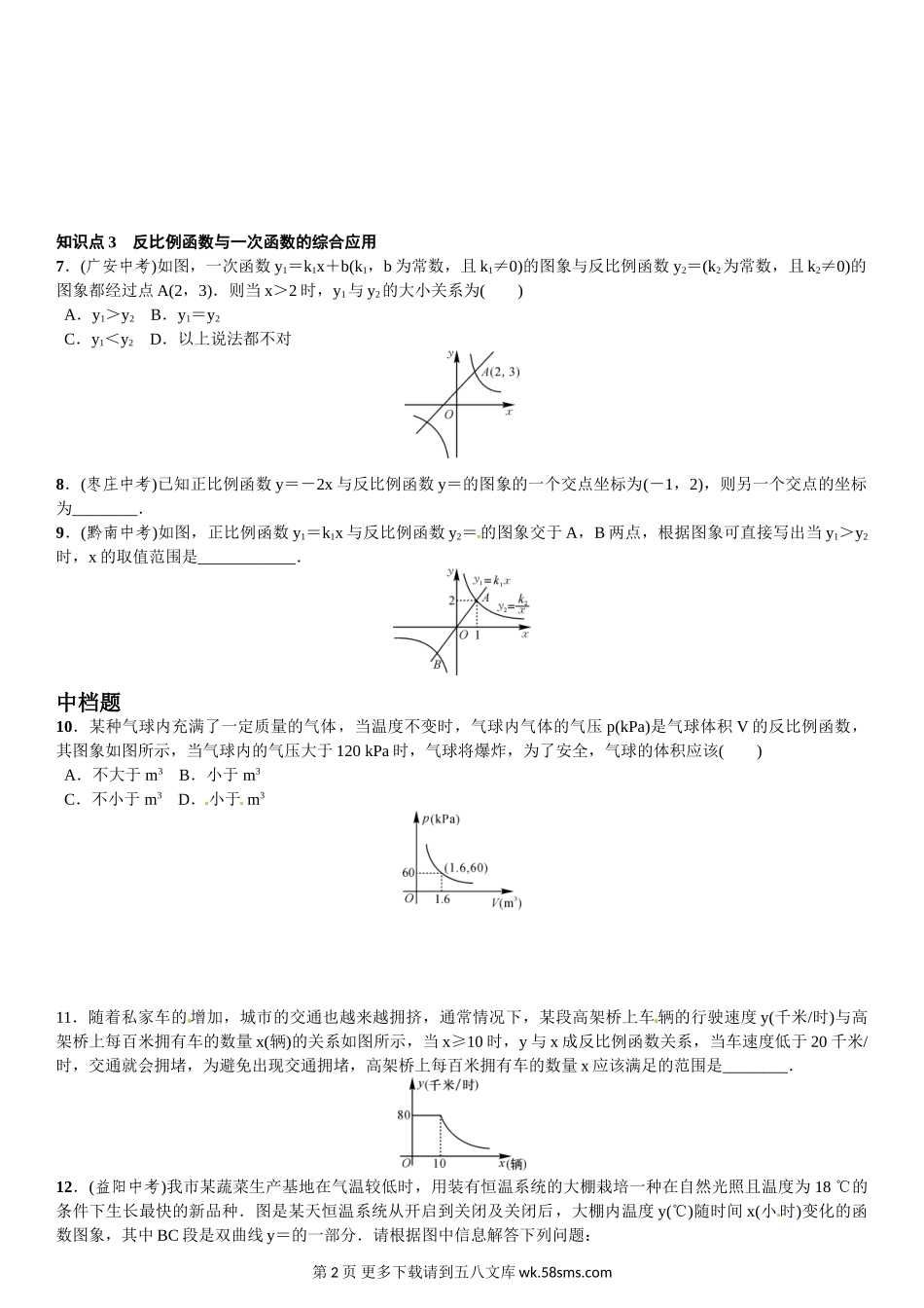 初三九年级数学6.3 反比例函数的应用.doc_第2页