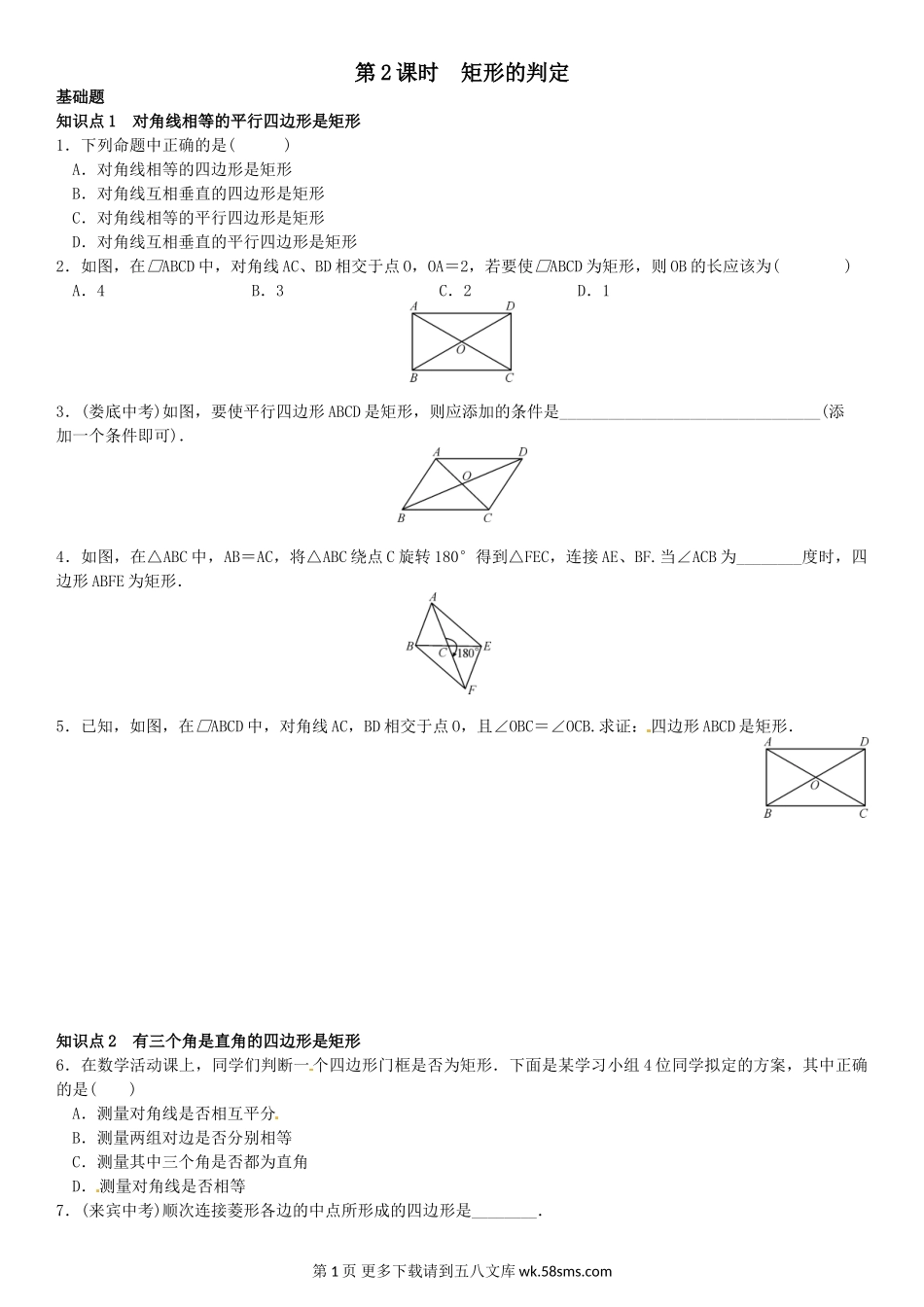 初三九年级数学1.2 矩形的性质与判定  第2课时 矩形的判定.doc_第1页