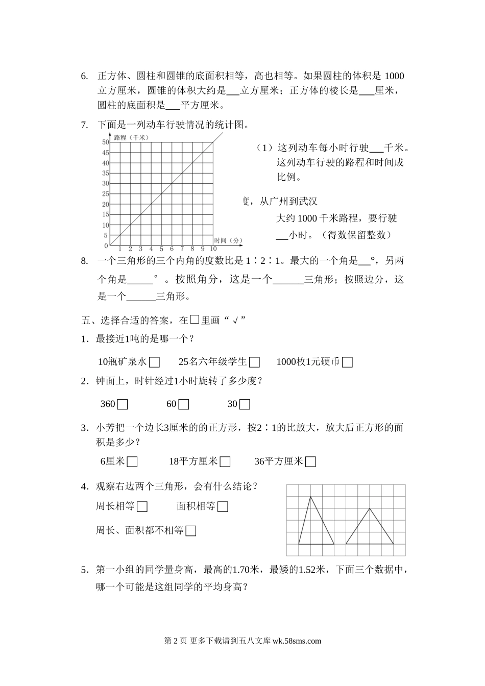苏教版六年级数学下册期末考试题A.doc_第2页